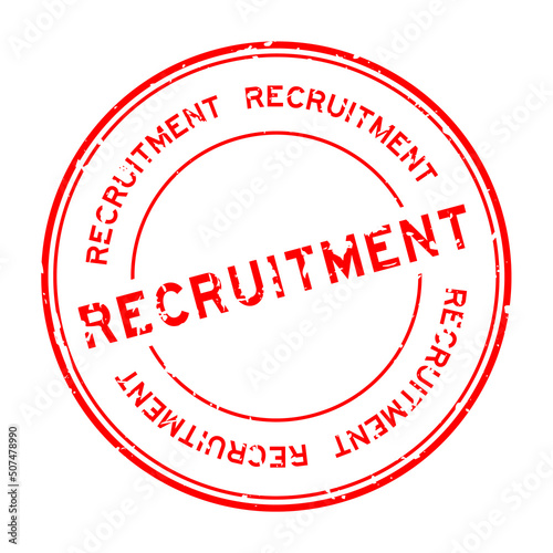 Grunge red recruitment word round rubber seal stamp on white background