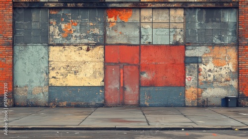 urban, grunge, brick, wall, metal, panel, door, rust-eaten, aged, weathered, texture, background, industrial, factory, city, street, architecture, facades, building, old, vintage, retro, derelict, abandoned, paint, colours, red, blue, grey, yellow, concrete, pavement, ground, surface, design, pattern, detail, rough, damaged, decay, abstract, photo, image, picture, photo