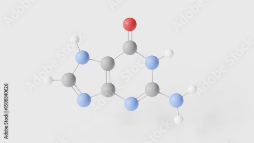 guanine molecule 3d, molecular structure, ball and stick model, structural chemical formula purine base