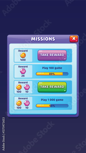 GUI Kit casual Asset for a game, a set of elements for the game interface - vector UI objects. Missions.
