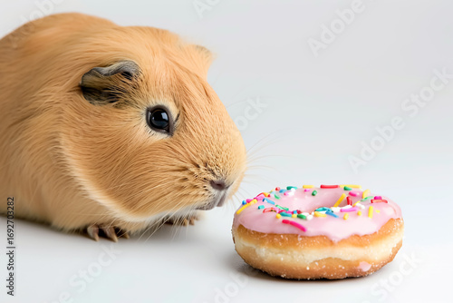 guinea pig, donut, pink, copy space, portrait, cute, pet, animal, greeting card, clean, fashion, accessory, small, beautiful, funny, humor, laughter, celebration, birthday