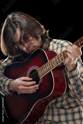 acoustic, adult, arm, artist, attractive, black, caucasian, chord, classic, classical, closeup, cool, dark, fashion, finger, fretboard, guitarist, hair, hand, photogenic, holding, instrument, isolated, long, male, man, musical, musician, 1, performer, person, playing, portrait, shirt, string, studio, style, wood, vertical, chequered