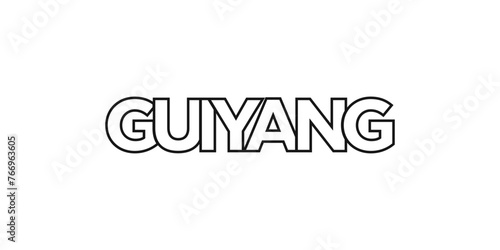 Guiyang in the China emblem. The design features a geometric style, vector illustration with bold typography in a modern font. The graphic slogan lettering.