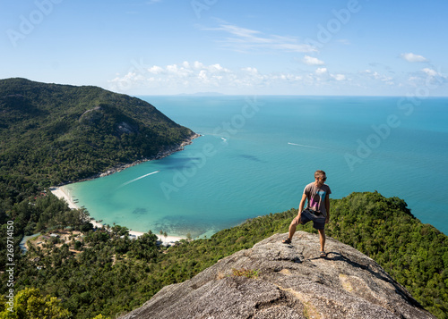 hiking, mountain, nature, landscape, sea, sky, beach, people, travel, walking, hike, hiker, mountain, view, woman, ocean, blue, summer, lake, water, rock, person, coast, adventure