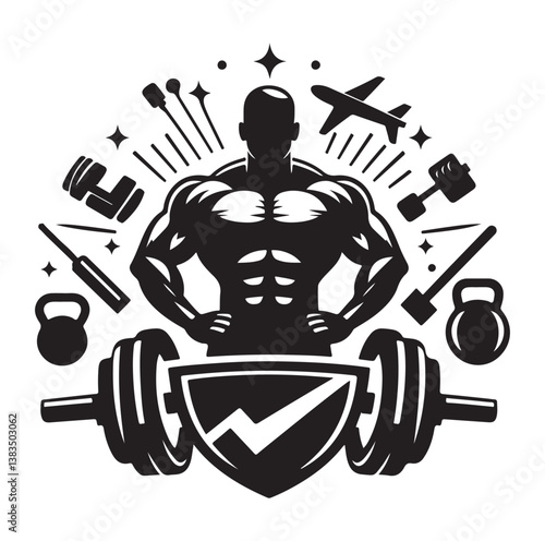 athlete, fitness, gym, muscle, power, signs, silhouette, bodybuilder, health, logotype, sport, body, dumbbell, illustration, icon, lifestyle, symbol, vector, physical exercise, club, exercise, graphic, heavy, label, lifting, steel, strength, strong, trainer, weight, bodybuilding, isolated, man, set, shape, black, concept, design, equipment, weightlift, arm, coach, company, corporate, emblem, fist