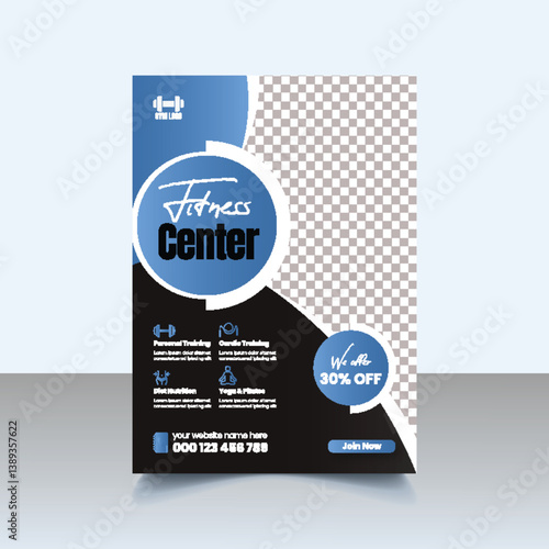 Gym Fitness workout and Sport training editable print flyer or poster, gym Fitness workout promotional leaflet, brochure cover, ads, banner template design