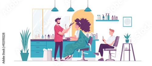 hairstylist, salon, client, hairdresser, hair, styling, barber, chair, scissors, tool, beauty, professional, style, care, grooming, service, hair care, hairdresser, product, haircut, woman, man, shop, design, interior, illustration, graphic, flat, equipment, colouring, accessory, waiting, service, appointment