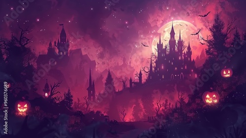 halloween, dark, castle, night, moon, background, card, horror, wallpaper, poster, scarey, skittish, banner, illustration, evil, creepy, black, sky, landscape, fantasy, haunted, silhouette, house, tree, gothic, october, autumn, design, celebration, holiday, bat, cemetery, tower, old, darkness, art, cartoon, party, forest, grave, treat, concept, fog, mystery, architecture, moonlight, invitation, beautiful, lantern