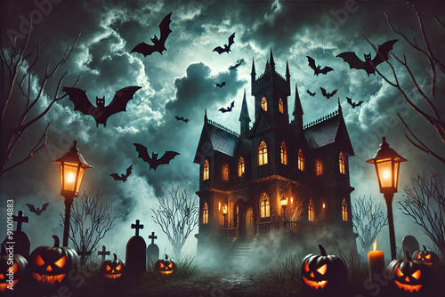 halloween, house, castle, night, moon, holiday, silhouette, haunted, tree, autumn, bat, vector, illustration, horror, bat, skittish, scarey, pumpkin, cartoon, dark, celebration, hill, october, black, evil