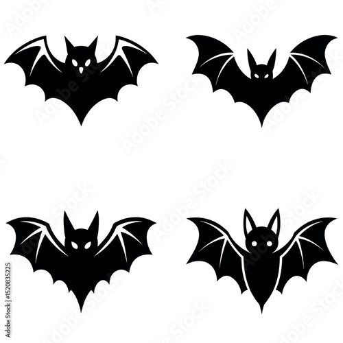 Halloween Bat Silhouettes Black Flying Bats on White Background for Spooky Designs
