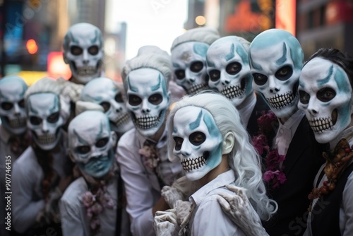 halloween, death, adult, architecture, celebration, festival, city, man, bone, person, carnival, portrait, wedding, horror, photo, woman, street, zombie, bride, human, face, head, mask, diverse, outdoors, costume, female, skittish, event, fear, day, tradition, mystery, parade, male, masque, disguise, representation