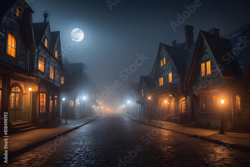 Halloween Halloween, lights, and fog-covered towns and streets during Halloween design.