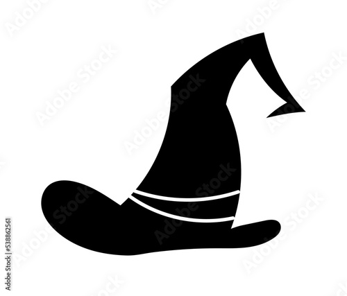 Halloween hat silhouette. Magic, imagination and fantasy. Symbol of fear and horror. Panic and nightmare. International and multicultural autumn festival, holiday. Cartoon flat vector illustration