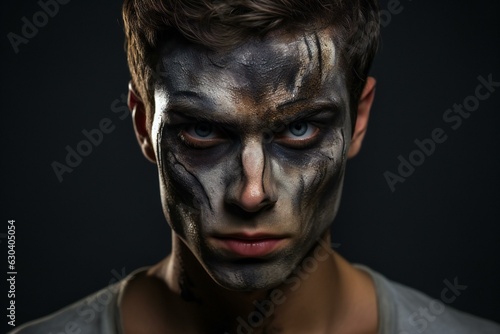 Halloween scary makeup male portrait. Scary makeup for Halloween on a man. Scary man.