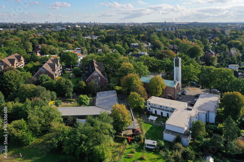 Hamburg Eidelstedt, Christuskirche Eidelstedt mit Wohngebiet, Luftaufnahme