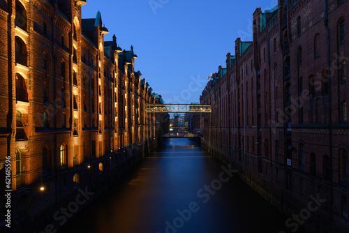hamburg, building, warehouse, district, fleet, illuminated, dusk, bridge, illumination, canal, brick, house, light, twilight, maritime, hanseatic, downtown, german, town, historic, dockside, night, evening, red, elba, harbor, river, exterior, facades, city landscape, landmark, urban, dock, embankment, old, unesco, europa, port, city, water, architecture, german