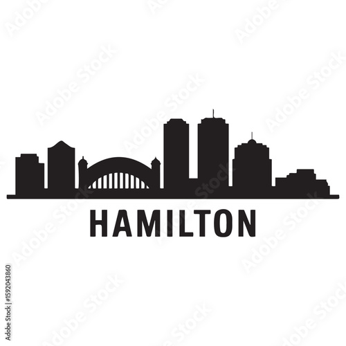 Hamilton skyline horizontal banner. Hamilton, Canada. Vector template for your design. Vector black silhouette. with white background