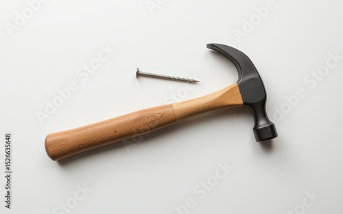 Hammer and nail on a white surface, ideal for construction and DIY projects.