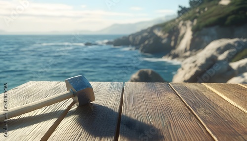 coast, still, daylight, nature, shadow, sky, wooden, horizon, calm, surface, brown, tool, metal, simple, texture, sea, ocean, shore, detail, product, blue, background, landscape, sea foam, hammer, rock, view, perspective, sunlight, beach, exterior, calmness, wood, outdoors, horizontal, water, rustic