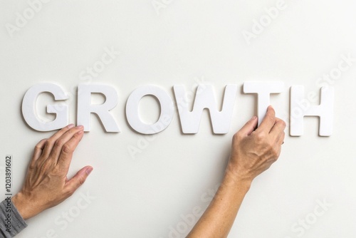 hand arrange white letters as growth.