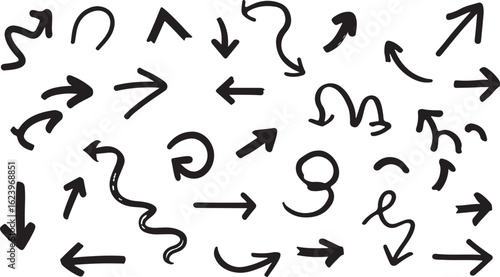 arrow, direction, pointing, hand-drawn, vignetting, black, white, graphic, design, symbol, illustration, simple, collection, isolated, movement, navigation, abstract, creative, doodle, shape, line, curve, loop, wavy, sharp, bold, communication, guidance, information, concept