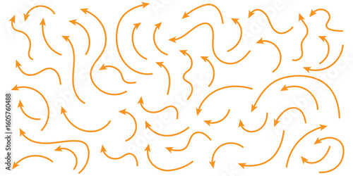Hand drawn arrows icon set. Sketch curved arrows design. Arrow handmade. Doodle arrows of varios shapes and directions. Pointer and cursor icons.