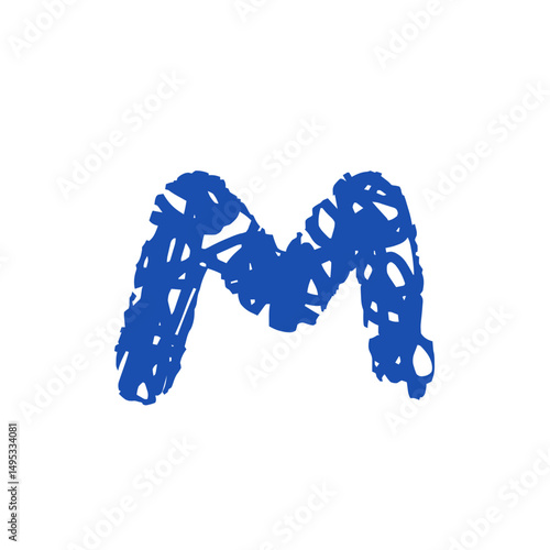 Hand Drawn Blue Scribble Letter M Alphabet Vector Isolated on White Background