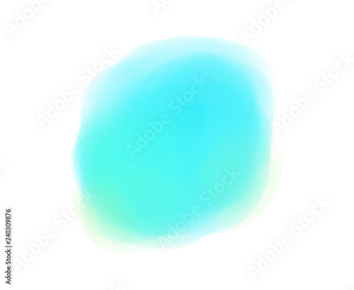 Hand drawn colorful digital spot on isolated white. Colored aquarelle blotch. Watercolour splotch. Paint and ink smudges. Bright blur stain. Trendy label brush stroke background