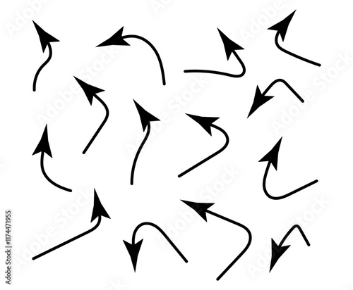 Hand drawn curve arrow set. Black doodle icons isolated on white background. Vector design elements