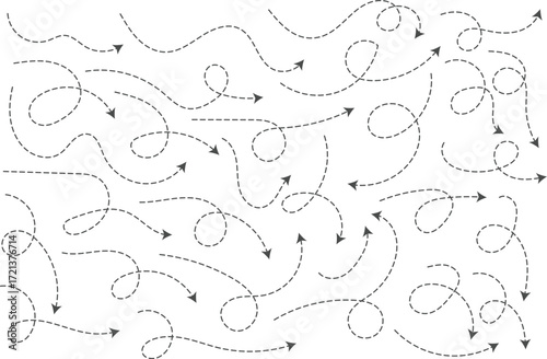 Hand drawn curve dotted line arrow. curved Dashed outline arrows set. Wavy dot line arrow collection. zigzag arrows