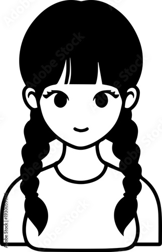 Hand Drawn Cute Cartoon Girl Black and White Avatar Illustration in Minimal Line Art Style Design
