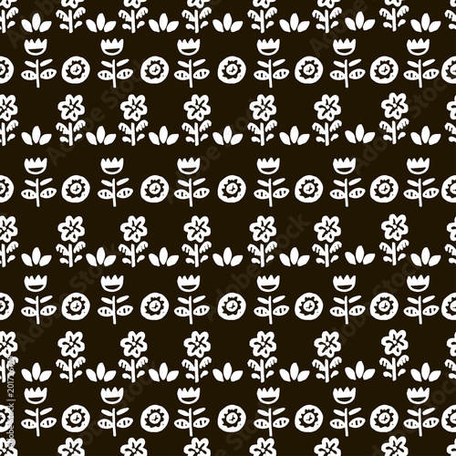 Hand drawn cute vector pattern. Simple doodle floral elements. Scandinavian style. Black and white.