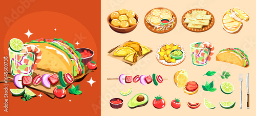 latin america, food, cookery, culture, traditional, vibrant, colourful, hand-drawn, cartoon, taco, delicious, tasty, menu, chef, cooking