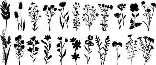 assortment, herb, herbal, flower, bloom, blossom, floral, collection, plant, hand-drawn, pack, set, silhouette, nature, illustration, arboretum, flower garden, botanic, art, wildflower