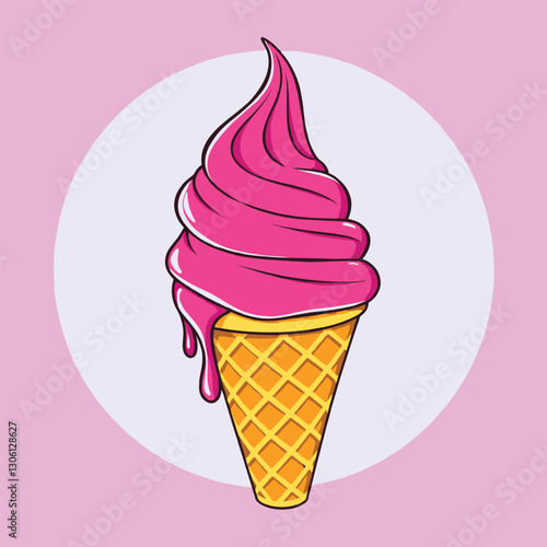 illustration, food, summer, cartoon, cute, design, ice cream, vector, cone, icon, dessert, sweet, waffle, tasty, delicious, glacé, favor, ice, cool, refreshment, collection, happy, logotype, comic, doodle, ball, melt, strawberry, chocolate, soft, enjoyment, playful, art, cream, scoop, vanilla, cold, flat, colourful, isolated, graphic, fun, snack, character, pink, symbol, background, outline, white