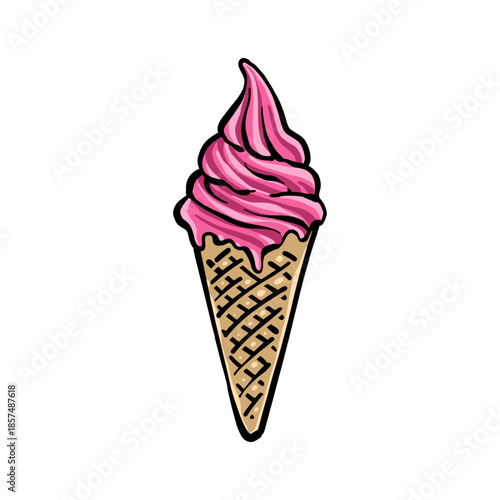 Hand drawn ice cream scoop with waffle cone, fresh and tasty dessert illustration. Perfect for menu design, cafe branding, packaging, advertising, social media, and food-related creative projects.