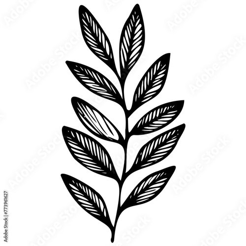 Hand drawn leaves line Symbol visual illustration Floral branch and minimalist flowers for logo or tattoo. Hand drawn line wedding herb, elegant leaves for invitation Botanical rustic trendy greenery