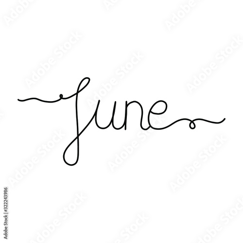 Hand drawn lettering phrase June. Month June for calendar. Ink brush lettering for winter invitation card.