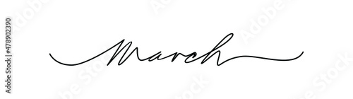 Hand drawn lettering phrase March. continuous one black line. Minimalistic drawing of phrase illustration