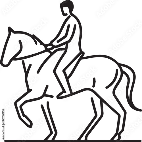 Hand Drawn Man Riding a Horse Black and White Avatar Illustration in Minimal Line Art Style Design