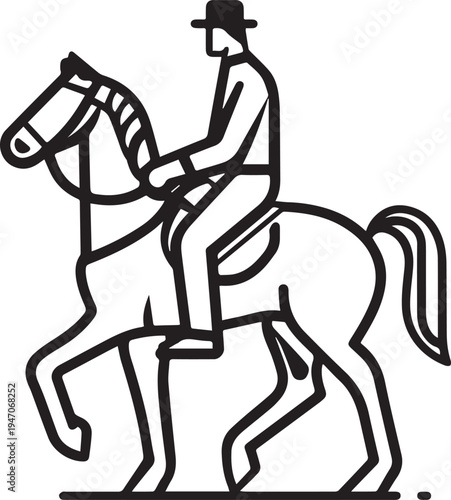 Hand Drawn Man Riding a Horse Black and White Avatar Illustration in Minimal Line Art Style Design
