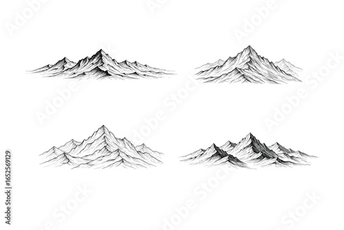 Hand Drawn Mountain Range Illustrations Set on Transparent Background