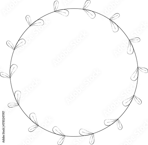 chaplet, frame, leaf, hand-drawn, illustration, round, circle, floral, nature, decoration, botanical, outline, line art, doodle, vignetting, natural, plant, border, minimal, vector, design, ornament, pattern, simple, foliage, wedding, invitation, romantic, black-and-white, leaf, decorative, decor