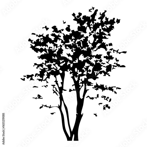 Hand drawn tree silhouette on white background