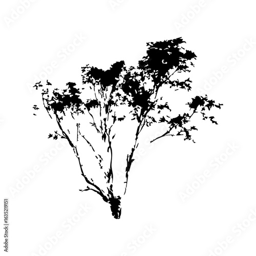 Hand drawn tree silhouette on white background