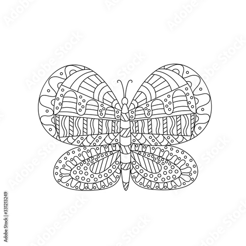 Hand drawn vector illustration. Cute butterfly on a white background, coloring book for kids. Simple form in Doodle style.