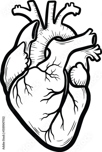 hand drawn vector illustration of a heart | Anatomical Human Heart Line Art with Veins Medical Illustration