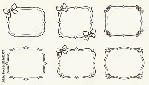 hand, drawn, vintage, frame, wavy, line, bow, various, style, wedding, birthday, social, media