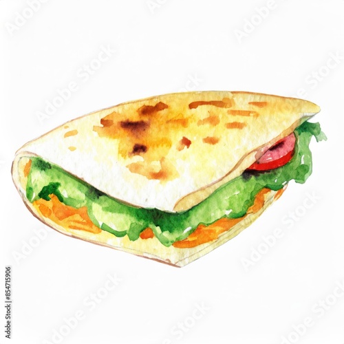 Hand drawn watercolor quesadilla isolated on white background