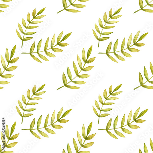 Hand drawn watercolor seamless pattern branch with light green color leaves on white background.Design for printing , wallpaper, paper, postcard, tile,textile